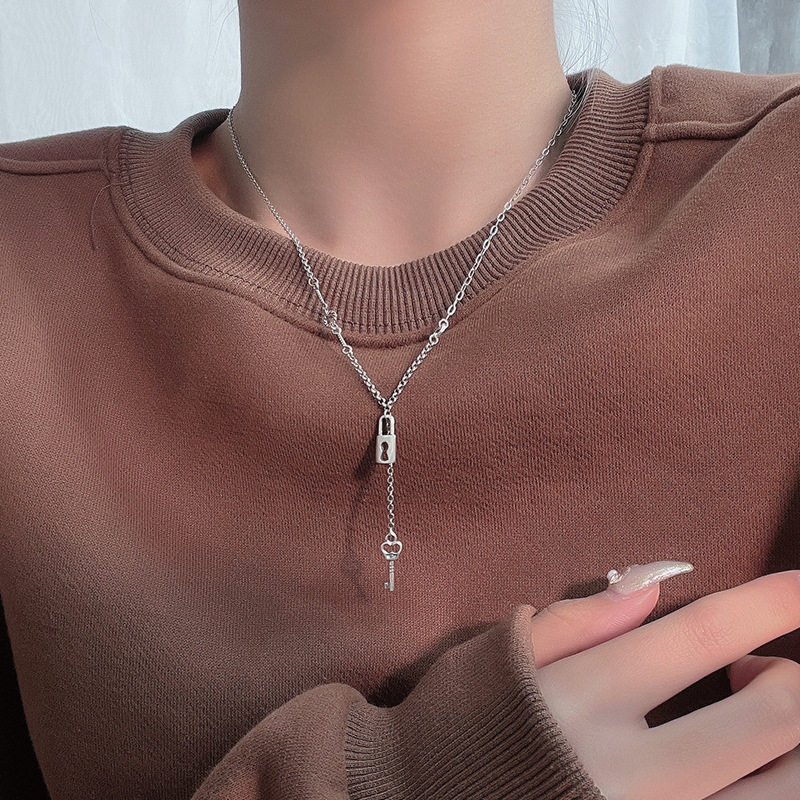 s925纯银小锁头钥匙短款项链女百搭气质简约轻奢小众设计锁骨链热门设计联盟服务商