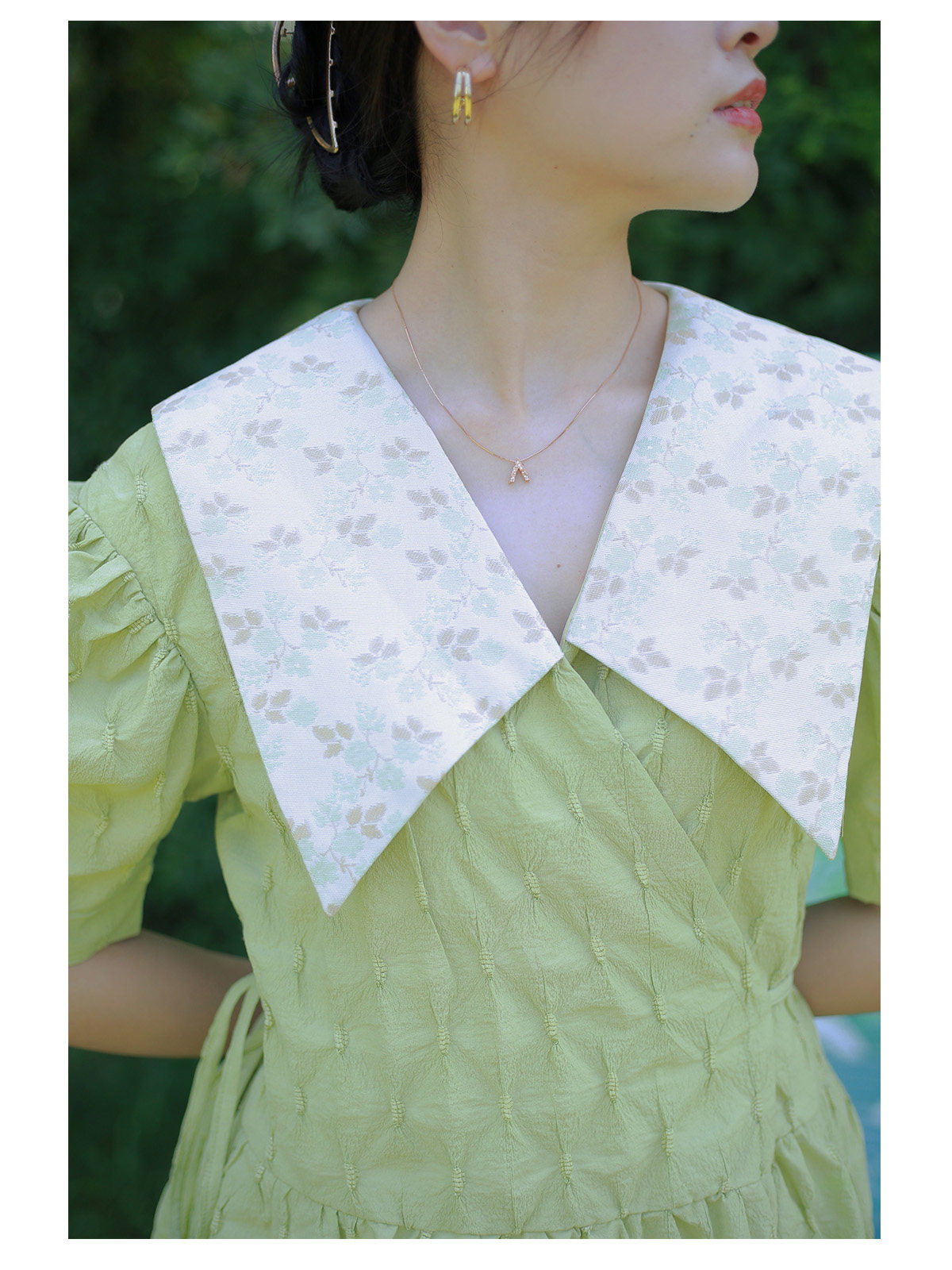 小孙老师 法式泡泡袖设计感碎花大翻领气质甜美连衣裙显瘦热门设计联盟服务商