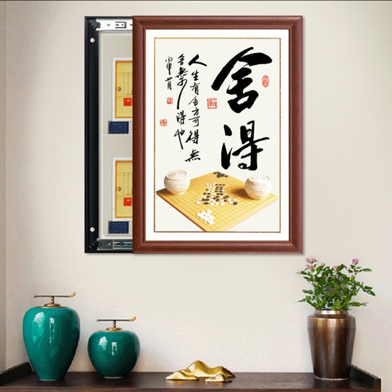 新中式实木框竖款免打孔电闸画配电箱画推拉电表箱装饰画竹报平安热门设计联盟服务商